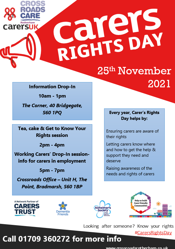 Carer’s Rights Day falls on Thursday 25th November this year. This event is about ensuring that carers (paid/unpaid) are aware of their rights and have the ability to access all the support that is available to them as soon as they need it, whether they are new to caring or have been caring for a while. Each year, Carer’s Rights Day helps by: